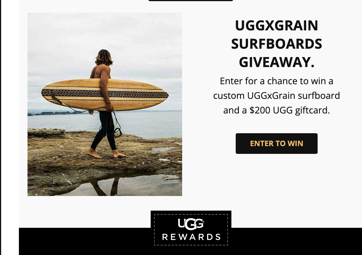 emailLuxury fashion announcement with hero headline, product showcase, rewards program, category navigation, and multi-channel support footer.